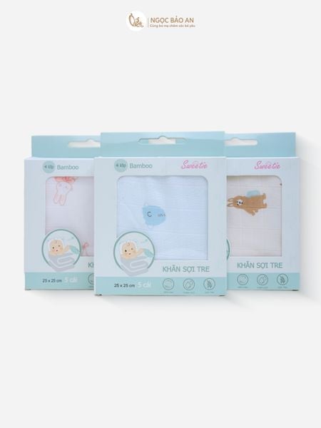 - Kích thước 25x25, 4 lớp, 5 cái/gói. Kích thước đủ lớn để làm khăn tắm cho bé,cuốn bé hoặc gối đầu cho bé.